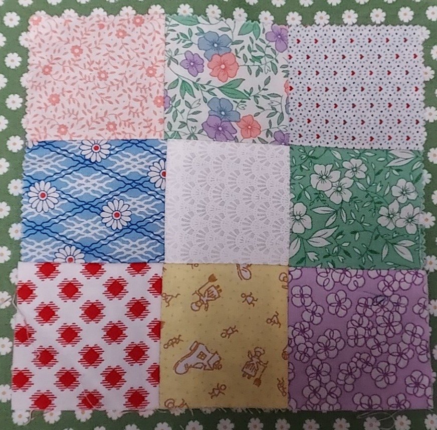9- 5 inch squares of cotton fabric